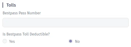 Go to the "Vehicles" page. Open the trucks for editing. In the pop-up that opens, scroll to the "Tolls" section. In the "Bestpass Pass Number" field, specify the corresponding transponder ID for this truck. In the "Is Bestpass Toll Deductible?" field, set the value to "Yes" if you want the TMS to find the driver associated with this truck and automatically create a deduction for the amount of this expense.