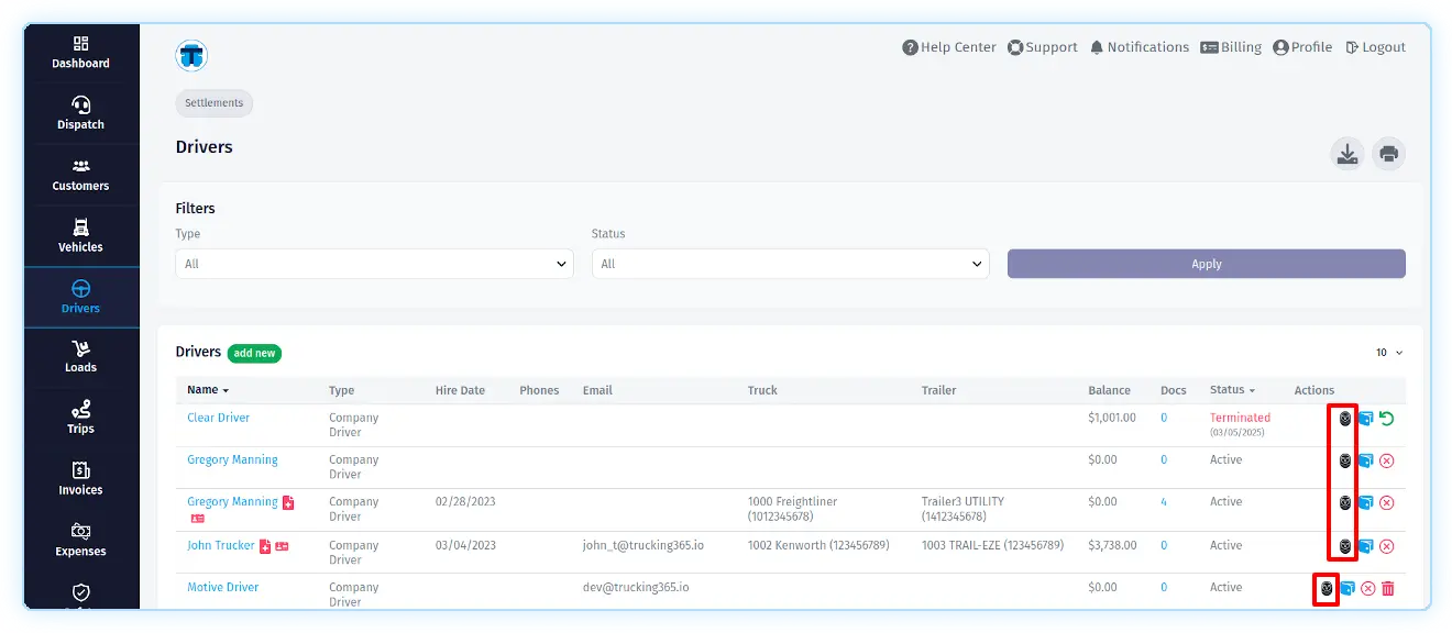Update drivers from Trucking365 TMS to Samsara ELD