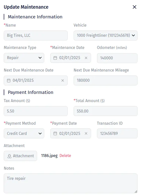 Users can upload and attach supporting documents directly to transactions, loads, or customer and driver records. These can include expense receipts, fuel receipts, maintenance records, etc. Electronic storage of these documents and easy access to them improve business efficiency.